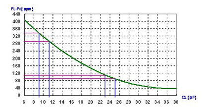 石英晶體共振子應用在并聯振蕩線路上, 振蕩頻率與負載電容CL有很大的關系. 這在前面的公式(3)就可以看到. 圖是以并聯振蕩線路上FL頻率對負載電容CL的變化曲線示意圖.