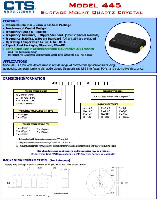 | 晶振規(guī)格參數(shù) | 型號445 | |