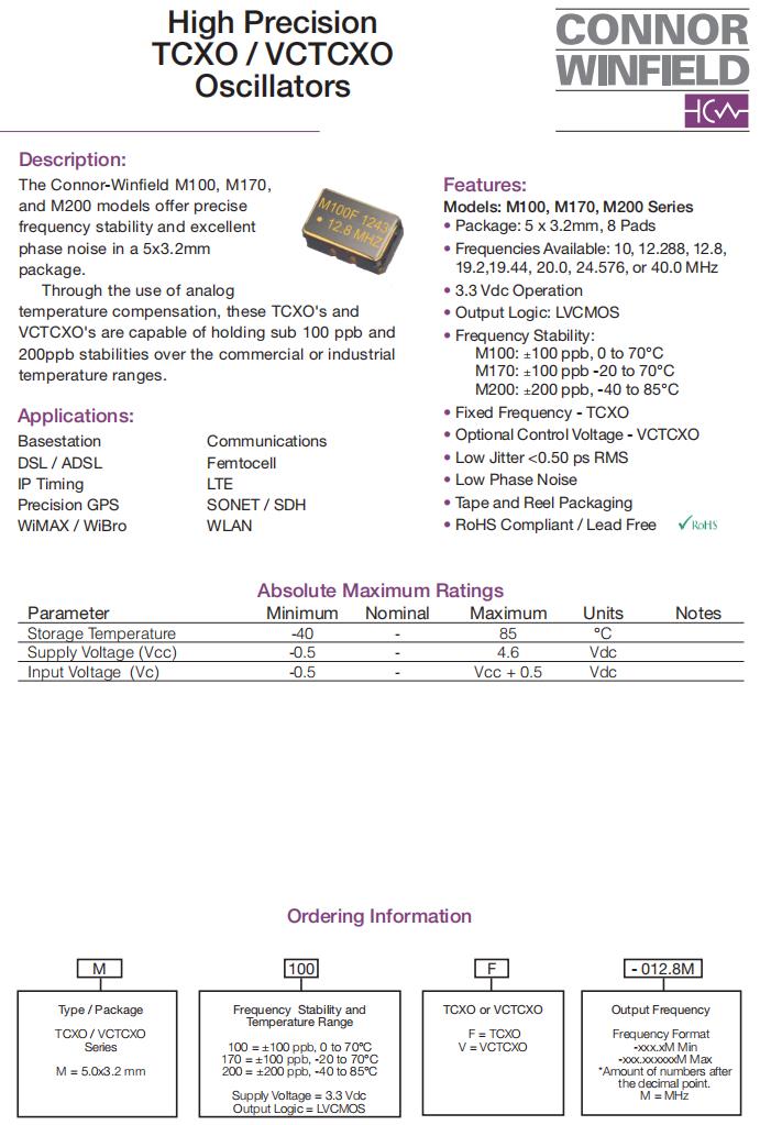 M200F-024.576M,5032mm貼片晶振,6G相關設備晶振,美國康納溫菲爾德晶振,M200石英晶體振蕩器,M200F-024.576M晶振,5032mm貼片晶振,進口有源晶振,頻率24.576MHz,電壓3.3V,工作溫度-40~85°C,頻率穩定性200ppb,無鉛環保晶振,高穩定性晶振,6G相關設備晶振,網絡終端晶振,以太網設備晶振,低端路由器晶振,光終端設備晶振,SONET/SDH設備晶振.