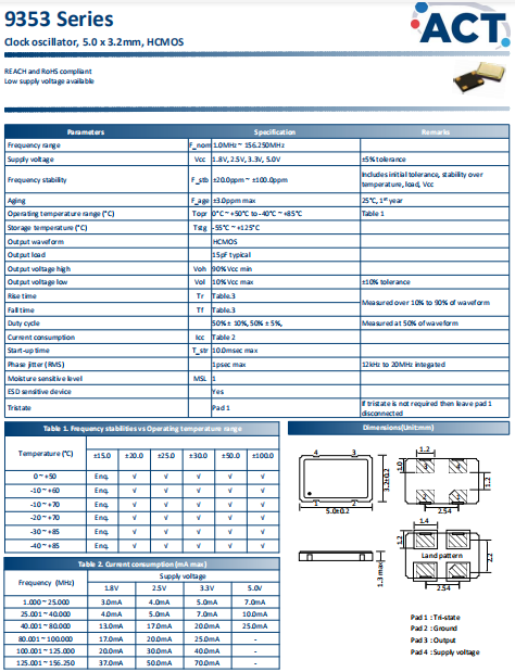 ACT晶振,9353晶振,高質(zhì)量有源振蕩器.智能手機晶振,產(chǎn)品具有高精度超小型的表面貼片型石英晶體振蕩器,最適用于移動通信終端的基準時鐘等移動通信領(lǐng)域.比如智能手機,無線通信,衛(wèi)星導航,平臺基站等較高端的數(shù)碼產(chǎn)品,晶振本身小型,薄型具備各類移動通信的基準時鐘源用頻率,貼片晶振具有優(yōu)良的電氣特性,耐環(huán)境性能適用于移動通信領(lǐng)域,滿足無鉛焊接的高溫回流溫度曲線要求.