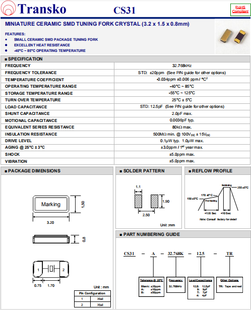 | Transko晶振 | 單位 | CS31晶振 | 石英晶振基本條件 |
