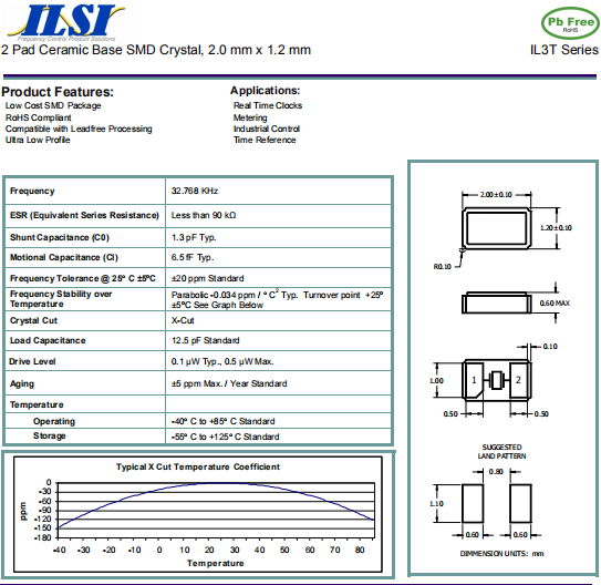 ILSI晶振,IL3T晶振,壓電石英晶體.小型表面貼片晶振型,是標準的石英晶體諧振器,適用于寬溫范圍的電子數碼產品,家電電器及MP3,MP4,播放器,單片機等領域.可對應32.768K以上的頻率,在電子數碼產品,以及家電相關電器領域里面發揮優良的電氣特性,滿足無鉛焊接的回流溫度曲線要求.