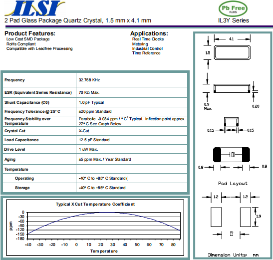 ILSI晶振,IL3Y晶振,無源環保晶體.32.768K系列具有超小型,薄型,質地輕的表面貼片音叉型石英晶體諧振器,晶振產品本身具備優良的耐熱性,耐環境特性,在辦公自動化,家電領域,移動通信領域可發揮優良的電氣特性,符合無鉛標準,滿足無鉛焊接的回流溫度曲線要求,金屬外殼的石英晶振使得產品在封裝時能發揮比陶瓷晶振外殼更好的耐沖擊性能.