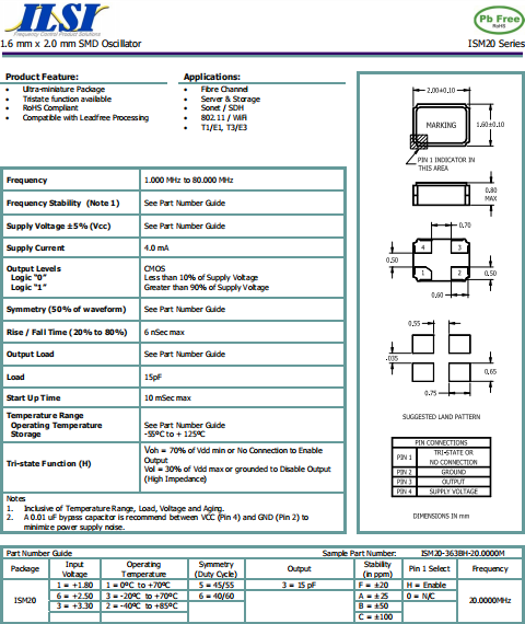 ILSI晶振,ISM20晶振,石英晶體振蕩器.普通石英晶振,外觀完全使用金屬材料封裝的,產品本身采用全自動石英晶體檢測儀,以及跌落,漏氣等苛刻實驗.產品本身具有高穩定性,高可靠性的石英晶體振蕩器,焊接方面支持表面貼裝,外觀采用金屬封裝,具有充分的密封性能,晶振本身能確保其高可靠性,采用編帶包裝,可對應產品應用到自動貼片機告訴安裝,滿足無鉛焊接的高溫回流溫度曲線要求.