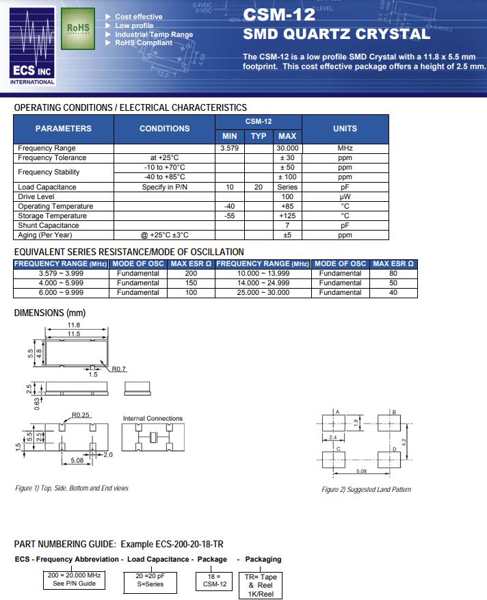 | ECS-40-18-18-TR | CSM-12 | 4MHz | ±30ppm | 18pF | -40°C ~ 85°C |