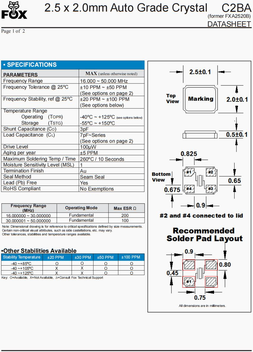 | FC2BSBBMM16.0-T3 | Fox晶振 | FX252B | 16 MHz | ±50ppm | ±50ppm |