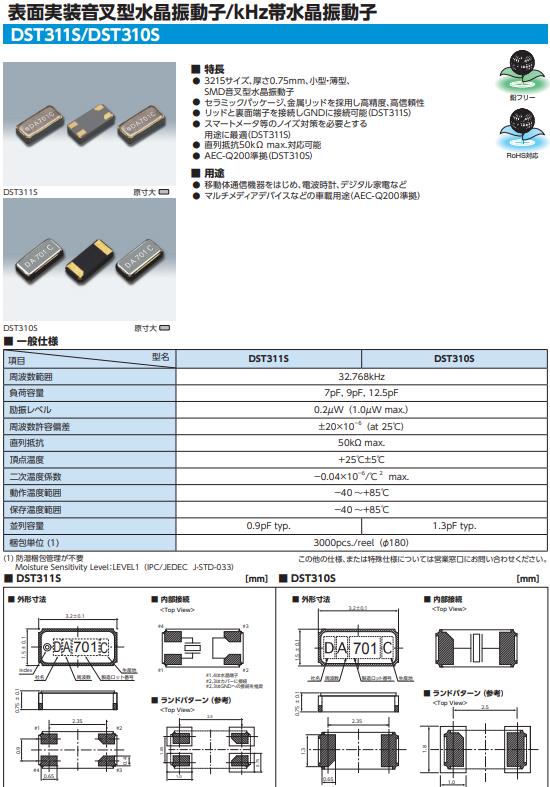 大真空晶振,DST310S音叉晶體,TJF080DP1AA003諧振器,32.768KHz時(shí)鐘晶體具有小型,薄型,輕型的貼片晶振表面音叉型晶體振蕩器,產(chǎn)品具有優(yōu)良的耐熱性,耐環(huán)境特性,可發(fā)揮晶振優(yōu)良的電氣特性,符合RoHS規(guī)定,滿足無(wú)鉛焊接的高溫回流溫度曲線要求,金屬外殼的封裝使得產(chǎn)品在封裝時(shí)能發(fā)揮比陶瓷振蕩器外殼更好的耐沖擊性.