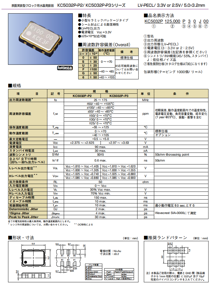 | KC5032A155.520C20E00 | AVX Corp/Kyocera Corp | KC5032A-C2, Kyocera | 155.52MHz | 2.5V, 3.3V | -10°C ~ 70°C |