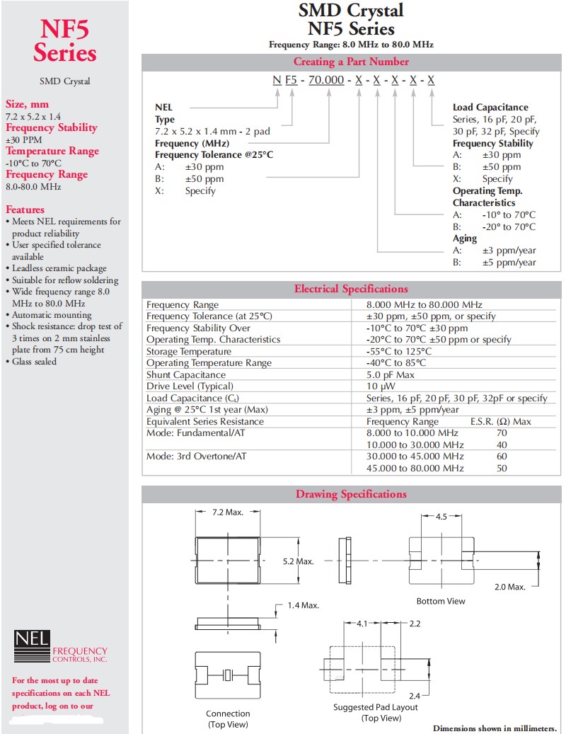 NF5-48.000-A-B-B-B-20pF,7050mm,美國NEL耐爾晶振,高可靠性晶振,參數表