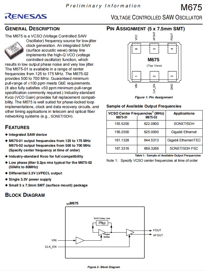 | M675-02-CA | IDT晶振 | OSC VCSO 500.000MHZ LVPECL SMD | M675 |
