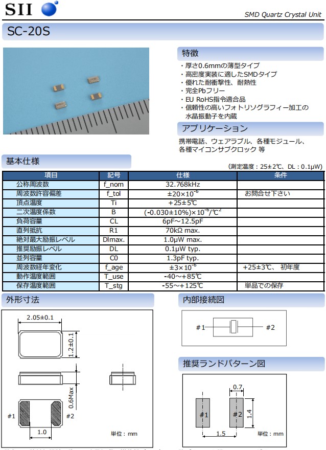 | Q-SC20S0321070CAFF | Seiko晶振 | SC-20S | 32.768kHz | ±10ppm | 7pF |