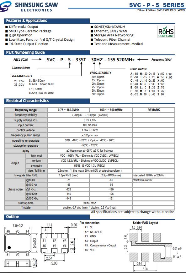韓國新松晶振,SVC-P-S有源晶振,SVC-P-S-33ST-30HZ-120.000MHz晶振,小型SMD有源晶振,從最初超大體積到現(xiàn)在的7050mm,6035mm,5032mm,3225mm,2520mm體積,有著翻天覆地的改變,體積的變小也使產(chǎn)品帶來了更高的穩(wěn)定性能,接縫密封石英晶體振蕩器,精度高,覆蓋頻率范圍寬的特點,SMD高速自動安裝和高溫回流焊設(shè)計,Optionable待機輸出三態(tài)輸出功能,電源電壓范圍:1.8V~5V,高穩(wěn)定性,低抖動,低功耗,主要應(yīng)用領(lǐng)域:無線通訊,高端智能手機,平板筆記本W(wǎng)LAN,藍(lán)牙,數(shù)碼相機,DSL和其他IT產(chǎn)品的晶振應(yīng)用,三態(tài)功能,PC和LCDM等高端數(shù)碼領(lǐng)域,符合RoHS/無鉛.