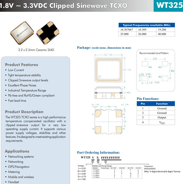 更多>>亞陶開發出溫度穩定性能極好的TCXO振蕩器WT3253F0026.000000,用于網絡系統,ECERA晶振
