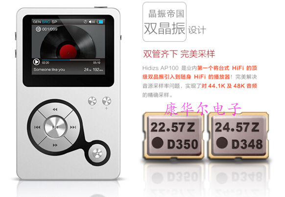 HIDIZS隨身播放器是今年推出的新款播放器,精致的外觀和獨特的配置,讓我大吃一驚,此款播放器內(nèi)部既然設(shè)有兩顆貼片晶振元件,驚就驚在這里了,大這有沒有絕得這款播放器從外觀看上去并沒有那么高檔,設(shè)計上中規(guī)中矩略顯老氣,不是智能更不高端,可它的內(nèi)部配置卻與眾不同,這是為何,難道它有什么特別的功能嗎?沒錯,HIDIZS AP100是業(yè)內(nèi)第一將臺式HIFI的頂級雙晶振引入到隨身HIFI的播放器!完美解決音源采樣率問題,實現(xiàn)了對44.1K及48K音頻的精確采樣。