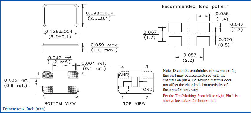 (2)在設計時請參考相應的推薦封裝。ABRACON晶振,貼片晶振,ABM8G晶振,ABM8G-12.000MHZ-4Y-T3晶振