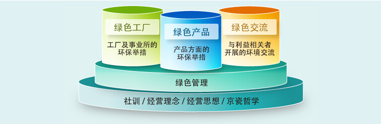 京瓷集團以全球環(huán)境管理體系“綠色管理”為基礎(chǔ),在“綠色產(chǎn)品”、“綠色工廠”、“綠色交流”這三大領(lǐng)域,追求環(huán)保和經(jīng)濟雙贏.同時,將共存(LIVING TOGETHER)作為所有企業(yè)活動的基礎(chǔ),開展可持續(xù)發(fā)展的“環(huán)境經(jīng)營”.